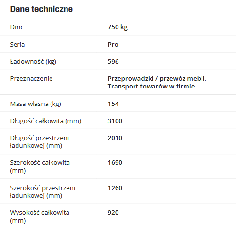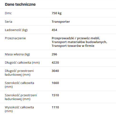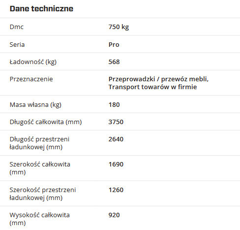 • Szerokość przestrzeni ładunkowej:1765 mm