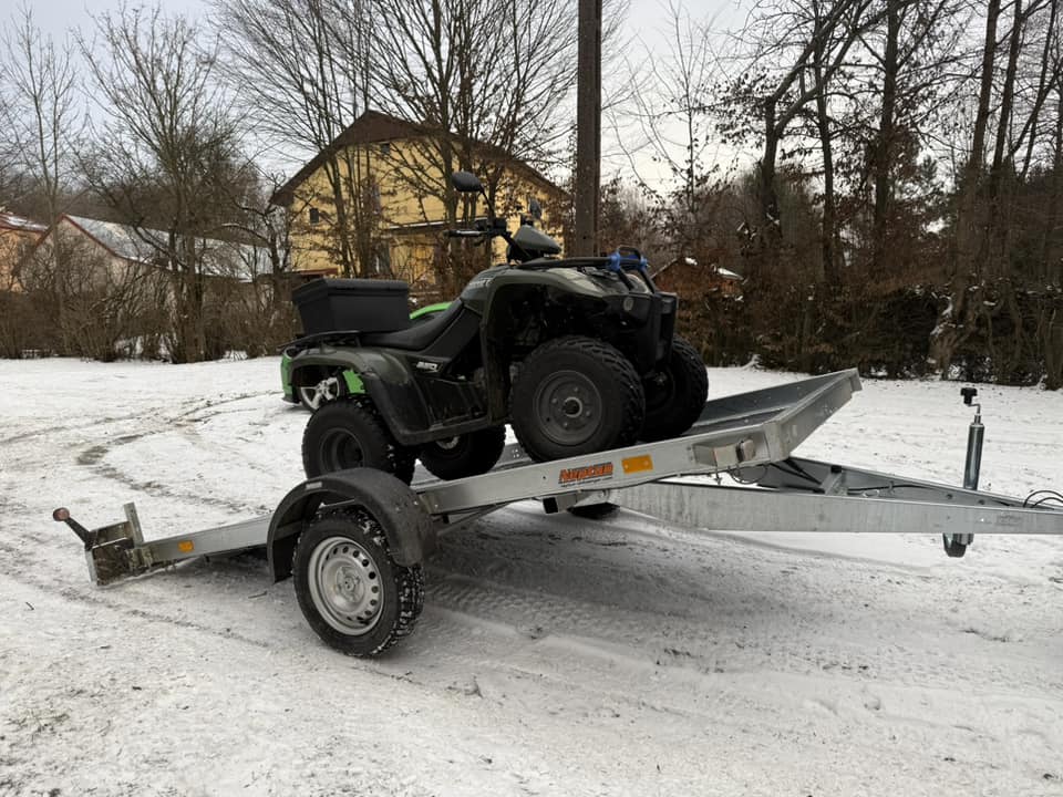 Uchylna przyczepka przeznaczona do transportu quadów, motocykli kosiarek ogrodowych i wiele innych.